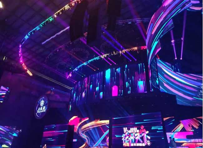 相信很多观众都被四川卫视的舞台效果震感到了,尤其是其美轮美奂的身临其境之感。例如舞台对水的表达,水的表达是科技的,用地面屏幕( 由联诚发提供的地转屏P4.81)的形式,将舞台的平面作为视觉表现的媒体平台,用视频内容去烘托展现艺人的表演,将平面立面的舞台视觉呈现来增强舞台的空间表现关系。