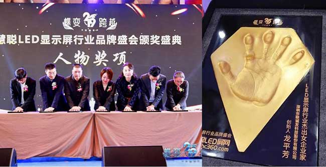 2019年12月20日,在深圳大梅沙京基喜来登度假酒店隆重举行“蝶变跨越”慧聪LED显示屏行业品牌盛会颁奖典礼!在来自全国各地的LED显示屏行业协会领导,企业领袖,精英代表以及来自全国各地的经销/代理/工程商、媒体共500余人的见证下,经过多轮角逐,专家评选,最终联诚发横揽三项大奖“最佳投资性品牌”,“十佳舞台租赁屏品牌”,而联诚发创始人龙平芳女士更是荣获“年度优秀女企业家”称号!