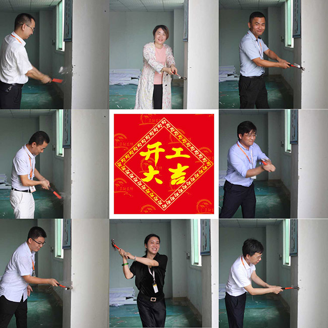 随后,龙平芳女士又带领大家进行“敲墙”仪式,“敲墙”仪式可能看起来有些许的滑稽,也有些人会感到费解,但它象征着工程的顺利开启,在创始人和各骨干们的每一锤子下,都是对联诚发声光电智慧产业园建设的美好祝愿,希望联诚发声光电智慧产业园建设开工一锤定音,一帆风顺!