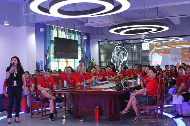 在交流会上,联诚发副总经理魏玉红女士再次对采购团一行的到来表示热烈欢迎,并重点介绍了公司的业务板块、品牌实力及公司LED产品优势。公司创始人龙平芳女士讲述了创业的艰辛历程及2019年联诚发与国内首个演出设备互联网共享租赁平台“华榕云仓”合作以来在舞台租赁市场取得的成就,并现场表示欢迎大家资源共享。