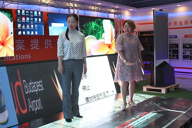王立萍书记正在体验联诚发P2.604镀膜地砖屏