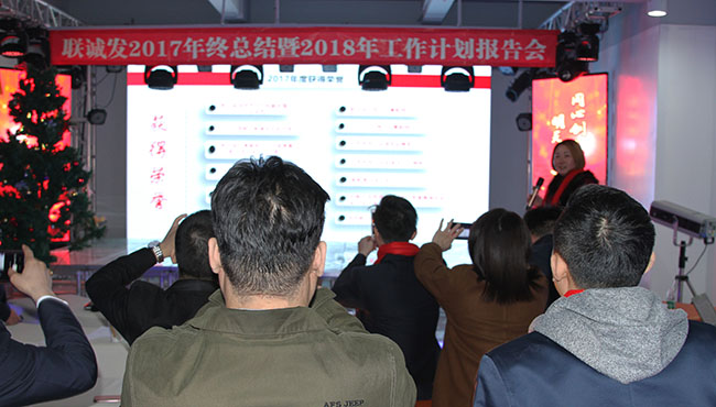 创始人龙平芳女士也通过PPT对公司17年作出的成绩进行了总结,分析了公司在过去的一年中,企业发展所存在的一系列问题与不足,并将在2018年得到全面解决与完善。公司在2018年将把重点放在企业战略、创新研发、品牌建设三大板块,为企业的未来发展布局。新的一年里,公司计划将持续性的加大产品研发投入,用创新型及实用性的新产品拓展市场,提升企业的产品竞争力,进一步提升产品品牌认知度、认可度和美誉度,树立良好的企业品牌形象。也将会把人才战略作为2018年工作重点,加大人才引进力度,加强人才培养和人才储备,从人才福利、企业文化、员工生活方面着手,让所有联诚发人都能看到自己的未来。解说过程中,大家纷纷拿起手机,将内容同步录了下来,不得不说,决策者的规划既有理论的高度,又有实践的深度。