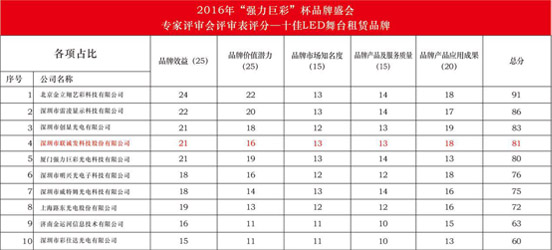 2016.11.23,慧聪网2016年度LED显示屏行业品牌盛会“十佳品牌”评选结果正式揭晓,联诚发(股票代码:837293)凭借在海内外的品牌影响力、在资本市场取得和优异成绩、联诚发质造在LED行业所树立的良好口碑,拿下了品牌盛会两项大奖,获得了“最佳投资性品牌”和“十佳LED舞台租赁屏品牌”称号,始创人龙平芳女士获得了2016年度“十佳LED屏行业风云人物”美誉,联诚发用实力和成绩征服了专家评审会,此荣誉实至名归。