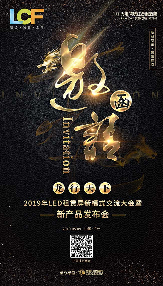 展会期间,联诚发携手慧聪LED屏网打造的“龙行天下”2019年LED租赁屏新模式交流大会暨新产品发布会也将同步举行。这是一场颠覆传统租赁市场的盛宴,届时,联诚发“龙艺”系列将在现场与大家见面,作为针对租赁市场量身打造的