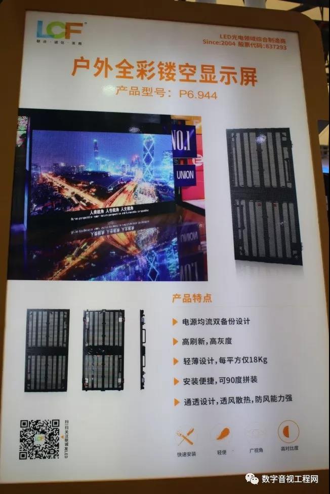 近年来,随着LED小间距显示技术的成熟,中高端小间距LED显示市场迎来了爆发式的增长。与此同时,一些市场触觉敏锐的行业先锋也在积极寻求突破。被视为新一代面板技术主流的Mini LED就在此种情况下应运而生,成为超高清LED显示领域发展的主要趋势。张总监向记者介绍道,本次展会联诚发带来了两款新产品也是今年推广的重点产品,一款是mini-LED P1.667,此款产品精致细腻,相对传统小间距产品,在像素密度、色彩效果、可靠性、克服像素颗粒化等方面都有不同程度的技术提升,具有更强的观赏性与吸引力。Mini-LED的量产,是联诚发在小间距领域的重大突破,而此款产品也是极具性价比和竞争优势,将加速渗透到更多终端产品市场。另一款是镂空屏P6.944,产品采用电源均流双备份设计,高刷新,高灰度;轻薄设计,每平方仅18Kg,安装便捷,可90度拼装;通透设计,透风散热,防风能力强。