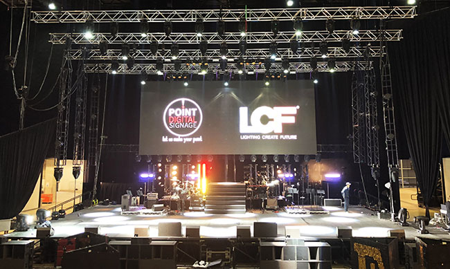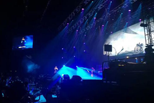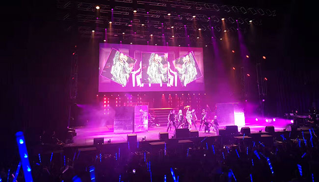 LED大屏幕,侧方以两个LED小屏为辅助。这三块显示屏均采用联诚发自主研发的租赁屏P4.81,500X500mm的箱体尺寸,轻松实现拼接要求,模组前后维护,智能显示模块,产品使用稳定,通过利用现代声光电的渲染,在产生强烈的舞台艺术效果的同时也不喧宾夺主。