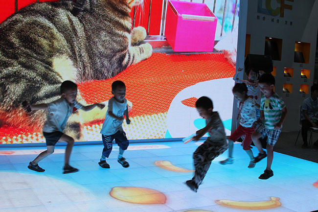 童真、童趣,在联诚发展区里,LED屏真正实现“一屏多用”,互动地砖屏成为了孩子们的游乐场。
