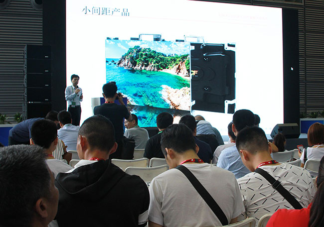 在新产品发布会上,联诚发研发总监向大家介绍了小间距新品“追梦”系列对比COB封装的优势及行业发展的的现状。全场座无虚席,现场气氛热烈。